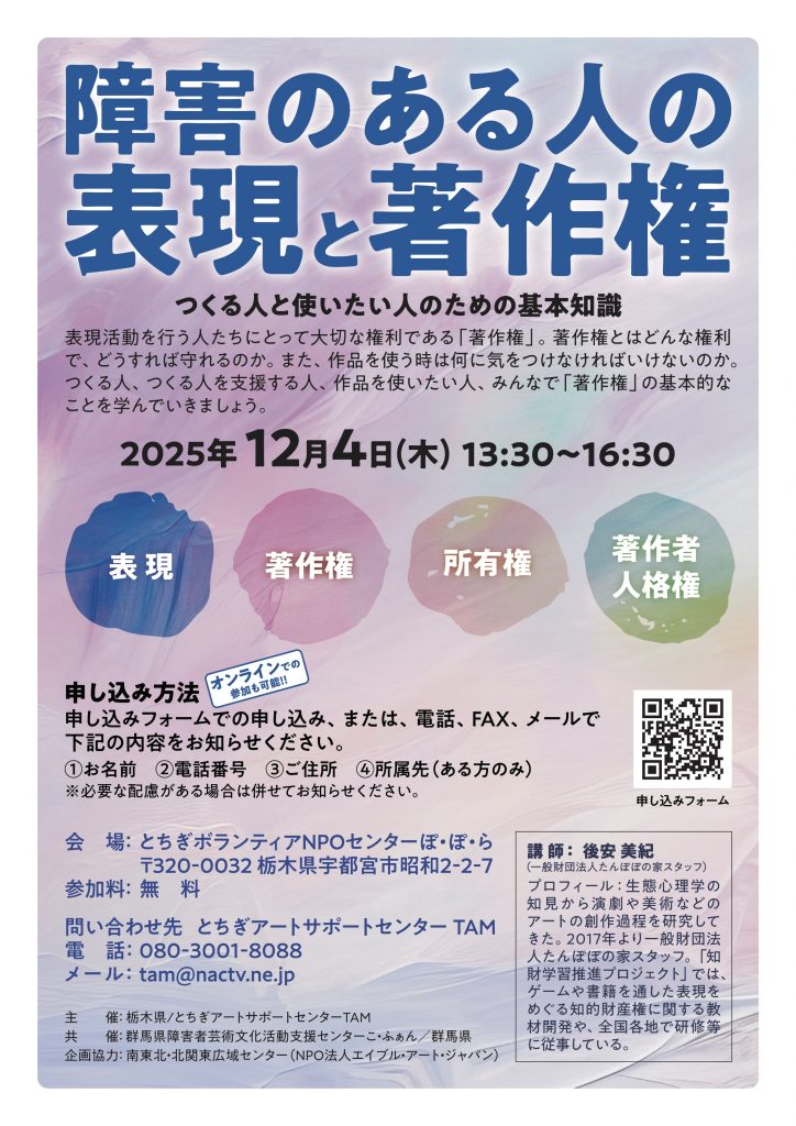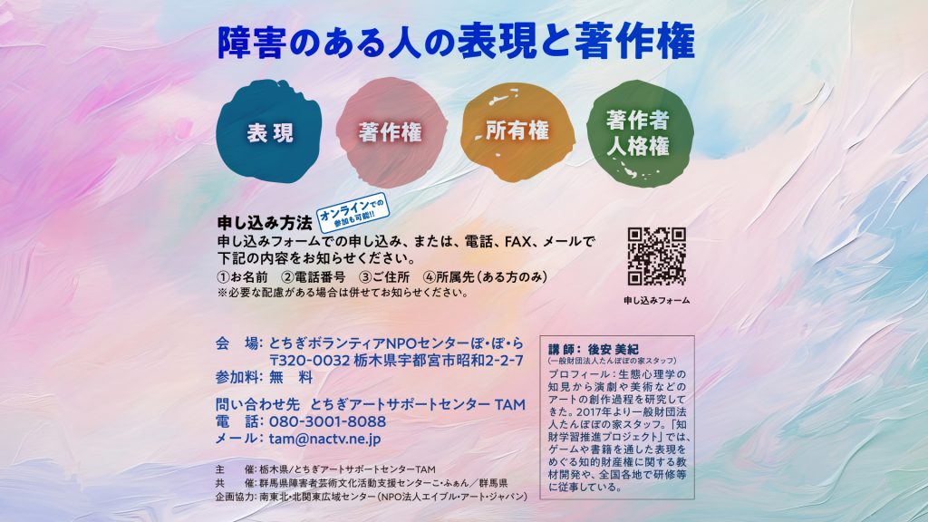 2025年10月下旬頃にとちぎアートサポートセンターTAMの公式WEBサイト上で発表します。