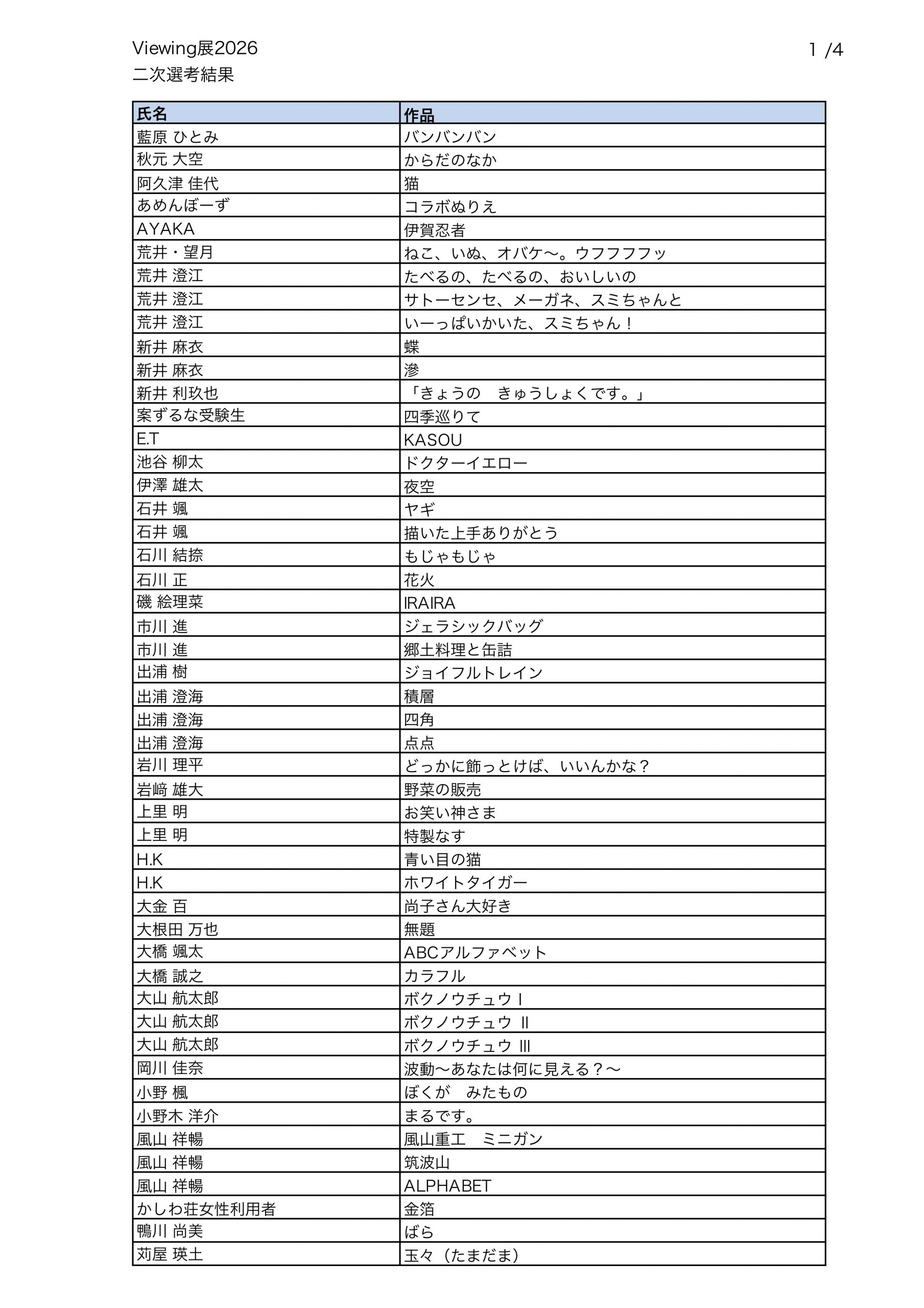 ①作品が入選した場合、Viewing展終了(2026年2月8日(日))までお預けいただけること。