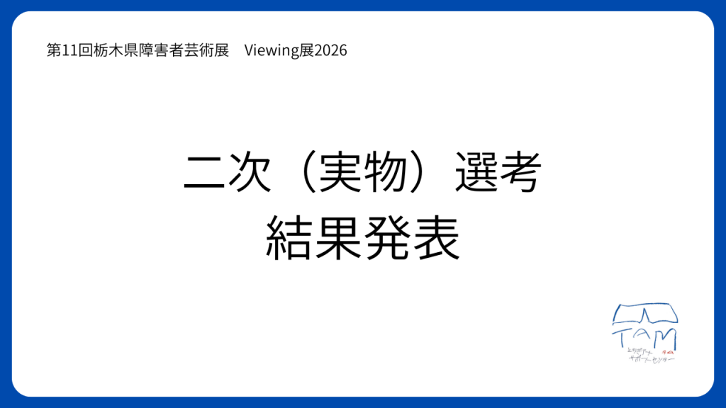 2025年9月26日(金)午後1時にとちぎアートサポートセンターTAMの公式WEBサイト上で選考を通過した作品名と作家名を発表します。